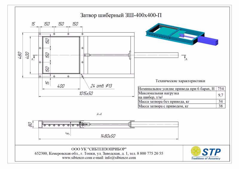 Наименование Габариты проходного окна шибера, мм Состав затвора шиберного ЗШ Масса Максимальная нагрузка на шибер, т/м2